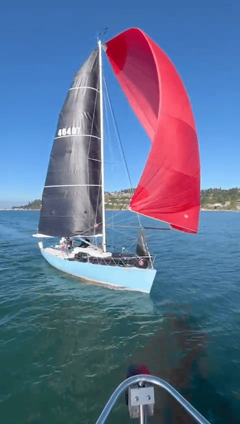 The way I saw it, Perfectly Strange was in the lead and sailing spectacularly well. They were sailing a longer route, but if they found more wind, they would easily crush it and win. On the other hand, Moore Pun is a Moore 24, and I have never managed to beat a Moore in a downwind race. They are obscenely fast little boats with a spinnaker up, and I had every reason to worry about beating them in a straight-up spinnaker drag race to the finish. We were behind both of them, but we had a small chance—if things played out right.