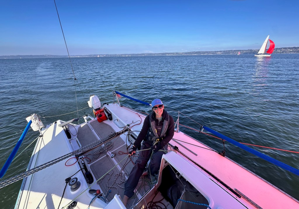 It was an exhilarating way to end the day, and I want to give a shout-out to the Moore Pun team for their amazing recovery after the cruise ship chaos. They fought hard for that win. However, it was a win for us too, for a couple of reasons: we won first overall in our class based on elapsed time for both days, and… we’ve never managed to actually finish that race before. Down the Sound is often a tough race to finish. The wind has been known to completely shut down and leave you stranded. One false move and your day is over.